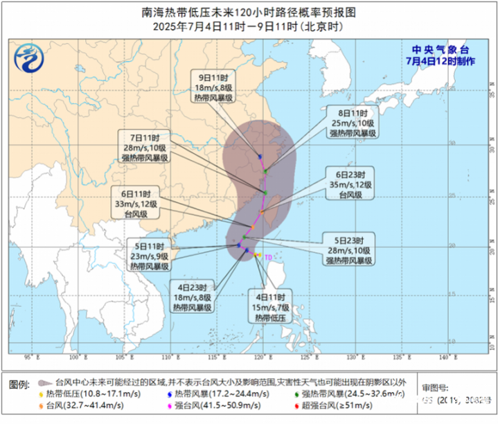 广东省气象服务中心发布,热带低压主要对海上有风雨影响,我省陆地以高温伴有雷雨天气为主:4日夜间-5日,南海东北部海面、粤东海面、台湾海峡南部海面风力逐渐增大到6~8级,阵风9~10级;6日,随着台风强度加强,上述海区风力将进一步增大到8~10级,阵风11~12级,台风中心附近海区风力11~12级,阵风13级。